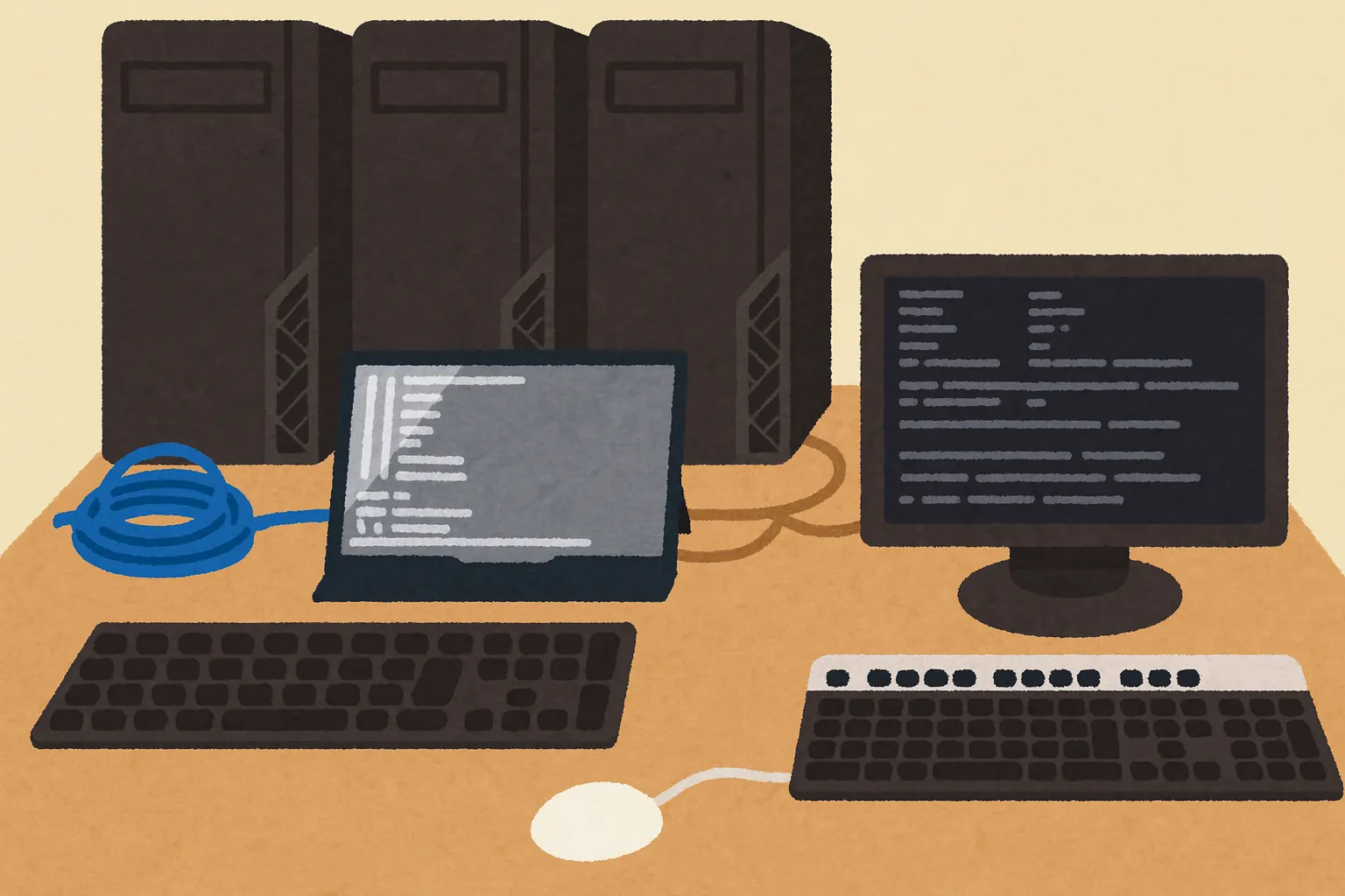 Section titled “計算機システムの模様替え (12月中旬)”来月年明けに研究室体験イベント的なものがあるので、それに備えて9つあるパソコンのすべてにディスプレイとキーボードを